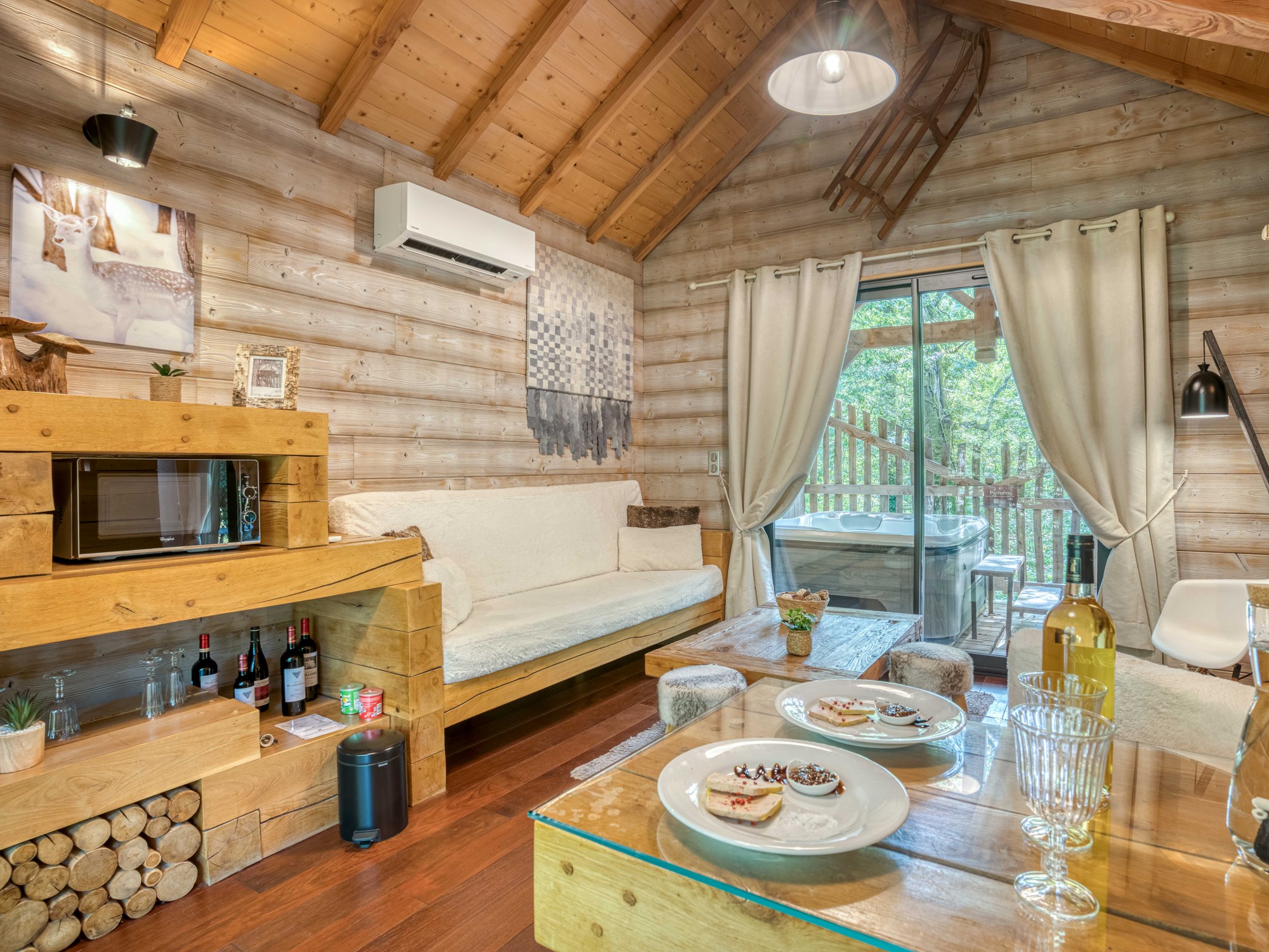 Cette suite de charme est dotée d’un grand espace à vivre pour profiter pleinement de votre séjour à deux. La cabane et spa Pyrénées sera vous transporter dans un univers cocooning et raffiné sur le thème de la montagne.