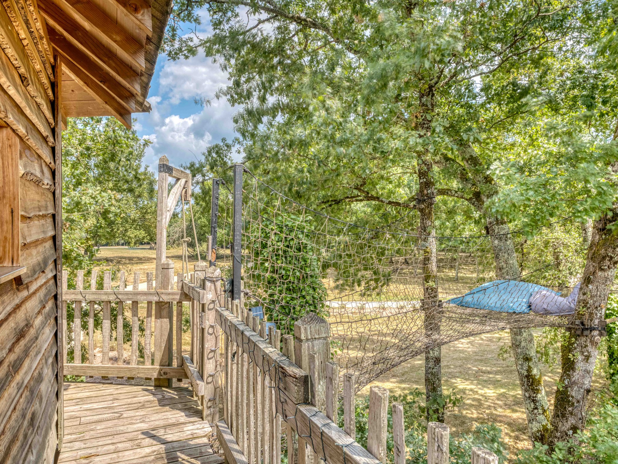 Nos cabanes dans les arbres bénéficient d'une vue unique sur la cité médiévale de Monpazier, bâtie en 1284, et l'une des mieux conservées du Sud-Ouest. Construites avec des bois d'essence locale, nos cabanes perchées manient le paradoxe entre la simplicité apparente et le travail technique invisible réalisé pour votre sécurité (la résistance des matériaux utilisés a été vérifiée par un bureau d'études spécialisé). Vous serez surpris par le standing inattendu pour une cabane perchées au milieu des arbres.