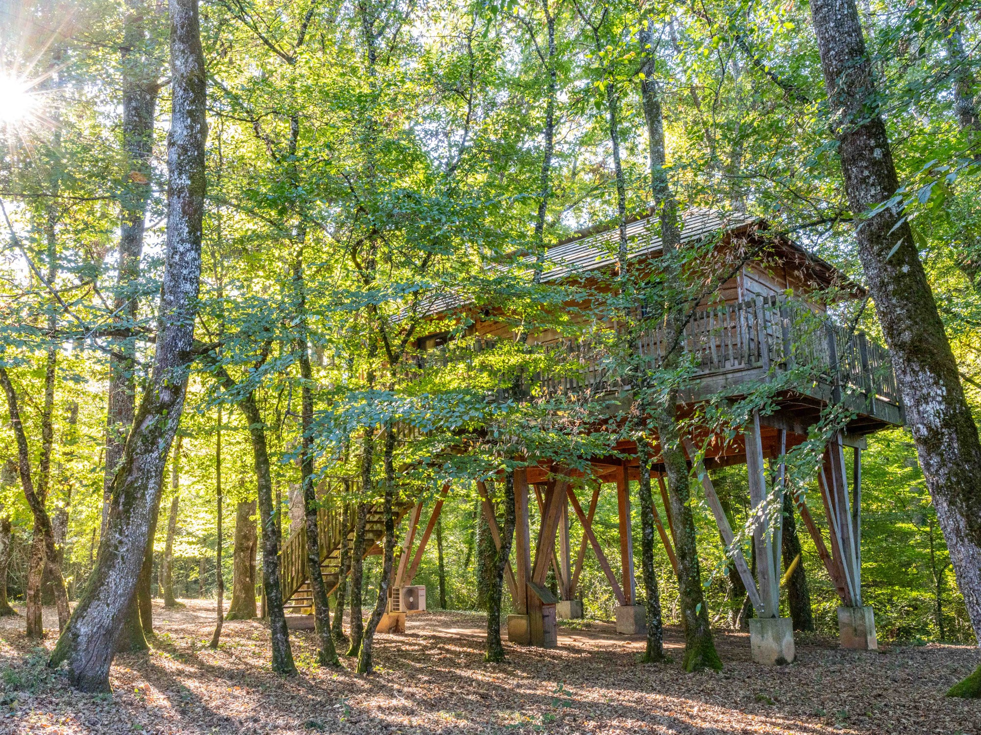 Nos cabanes dans les arbres bénéficient d'une vue unique sur la cité médiévale de Monpazier, bâtie en 1284, et l'une des mieux conservées du Sud-Ouest. Construites avec des bois d'essence locale, nos cabanes perchées manient le paradoxe entre la simplicité apparente et le travail technique invisible réalisé pour votre sécurité (la résistance des matériaux utilisés a été vérifiée par un bureau d'études spécialisé). Vous serez surpris par le standing inattendu pour une cabane perchées au milieu des arbres.