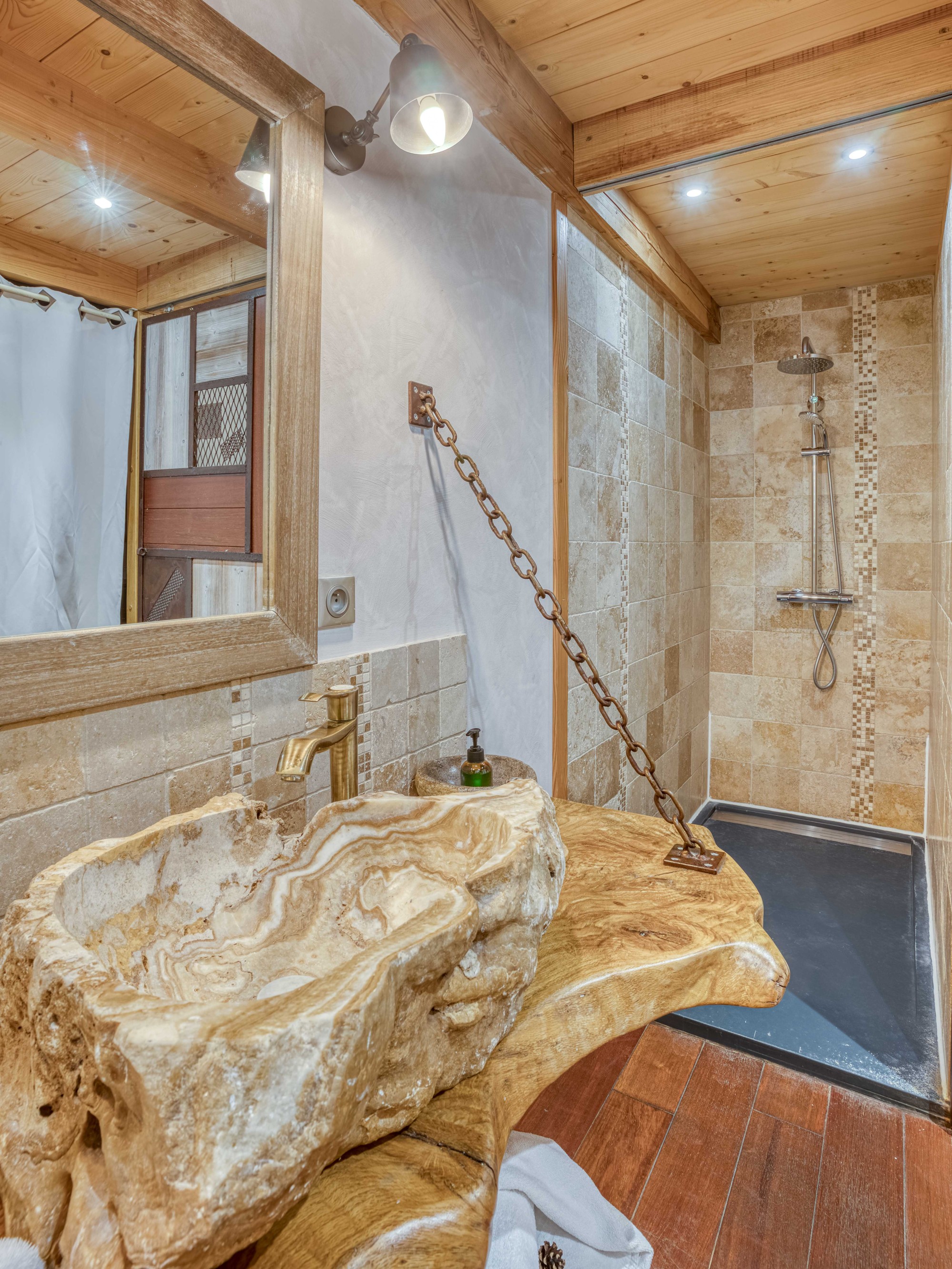 Cette suite de charme est dotée d’un grand espace à vivre pour profiter pleinement de votre séjour à deux. La cabane et spa Pyrénées sera vous transporter dans un univers cocooning et raffiné sur le thème de la montagne.